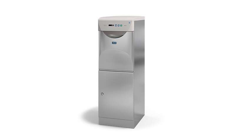 Do myjni dołączone są 2 niezbędne środki chemiczne w 5-litrowych kanistrach, które myjnia pobiera w czasie procesu (płyn myjący Arjo Liquids Flusher Detergent i płyn zmiękczający wodę Arjo Liquids Flusher Rinse.)
