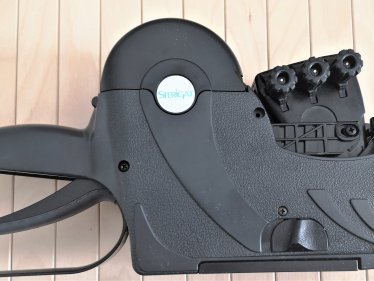 Metkownica alfanumeryczna trzyrzędowa umożliwiająca ustawienie sześciu różnych informacji, drukowanie tych informacji w trzech rzędach w zaplanowanych polach na etykietach i naklejanie zadrukowanych etykiet na pakietach lub pojedynczych torebkach.